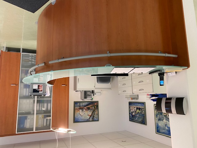 Praxis befindet sich in einem Ärzte-/Geschäftshaus in unmittelbarer Nähe zum Hauptbahnhof sowie Busbahnhof in zentraler, verkehrsgünstiger Lage, öffentliches Parkhaus direkt am Ärztehaus. Die Praxis ist barrierefrei, behindertengerecht und befindet sich im 1. OG mit Aufzug. Zurzeit sind 5 Behandlungszimmer voll eingerichtet in Betrieb, ein 6. Behandlungszimmer mit Installationen ist vorhanden. Röntgenraum mit digitalem Dentalröntgen und OPG/DVT, TI-Anbindung komplett vorhanden, EDV auf Windows 11 Pro sowie Röntgensoftware, Folienscanner neu in diesem Jahr.